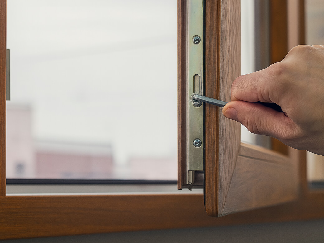 Регулировка деревянных евроокон помогает восстановить плотное прилегание створок, убрать сквозняки и вернуть окну легкость в управлении. Несмотря на прочность конструкции, дерево подвержено естественным деформациям — со временем материал немного изменяет форму из-за перепадов влажности и температуры. Из-за этого створка может сместиться, прижим ослабевает, а фурнитура начинает работать с усилием.